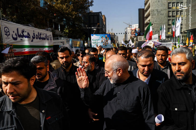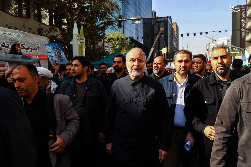 قالیباف با اشاره به سه رویداد مهم تاریخی در روز ۱۳ آبان/عقرب در ایران، یعنی تبعید امام خمینی(ره) در سال ۱۳۴۳، شهادت دانشآموزان در سال ۱۳۵۷ و تسخیر لانه جاسوسی امریکا در سال ۱۳۵۸، این روز را نماد مبارزه با استکبار و دفاع از استقلال این کشور دانست.