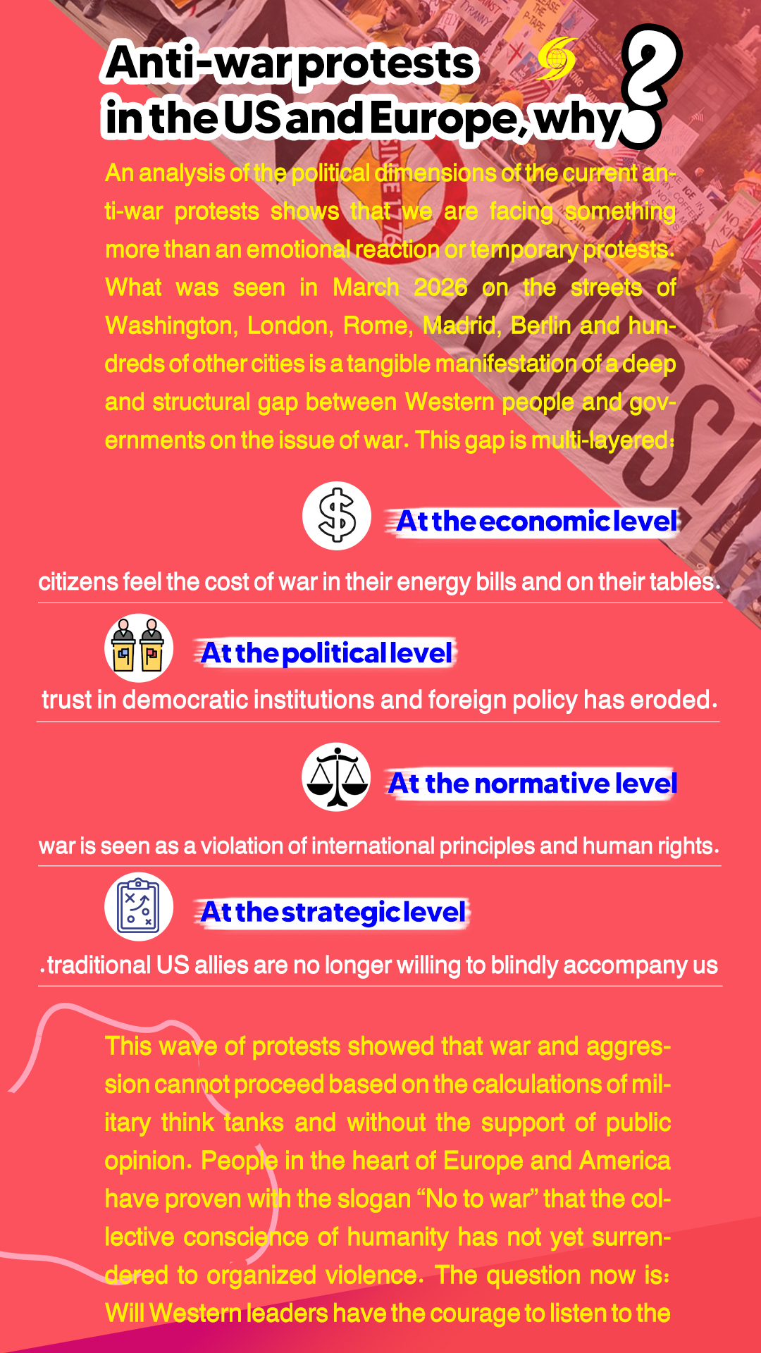 Millions of people in the US and Europe took to the streets with the slogan "No Kings", revealing the deep gap between public opinion and the war-mongering policies of Western governments.