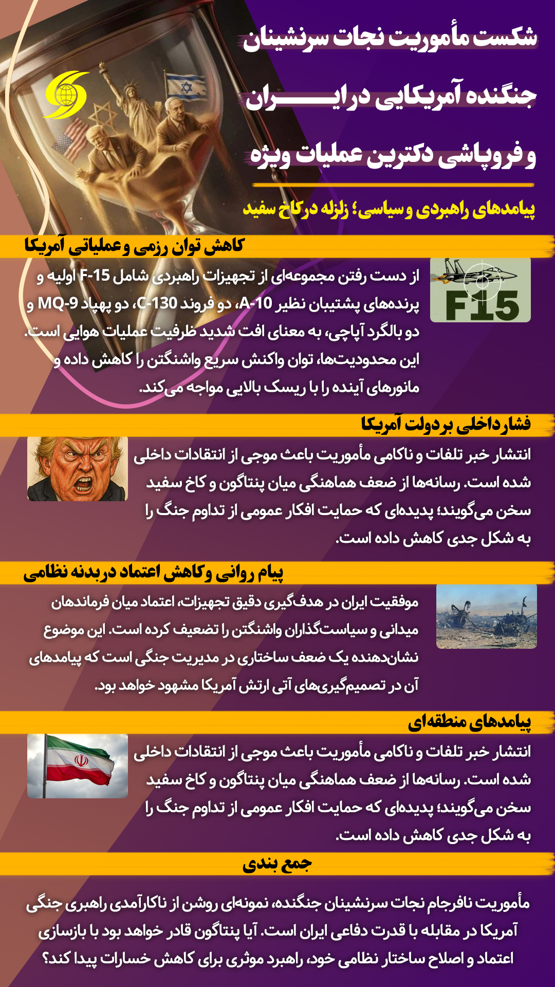 مأموریت نافرجام نجات سرنشینان جنگنده، نمونهای روشن از ناکارآمدی راهبری جنگی آمریکا در مقابله با قدرت دفاعی ایران است.
