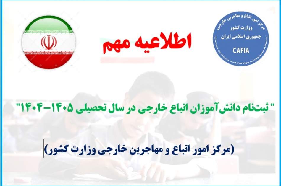 «بدینوسیله به اطلاع اتباع و مهاجرین خارجی ساکن در کشور میرساند: ثبتنام دانشآموزان اتباع خارجی در مدارس آموزش و پرورش برای سال تحصیلی ۱۴۰۵-۱۴۰۴ با شرایط ذیل آغاز میشود: