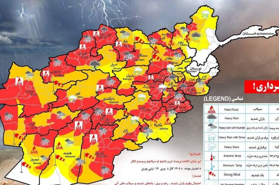 ریاست هواشناسی از شهروندان، به ویژه باشندگان مناطق کوهستانی و مسیرهای سیلابی خواسته است تا تدابیر احتیاطی لازم را اتخاذ کرده و از رفتوآمدهای غیرضروری در مناطق پرخطر خودداری کنند.